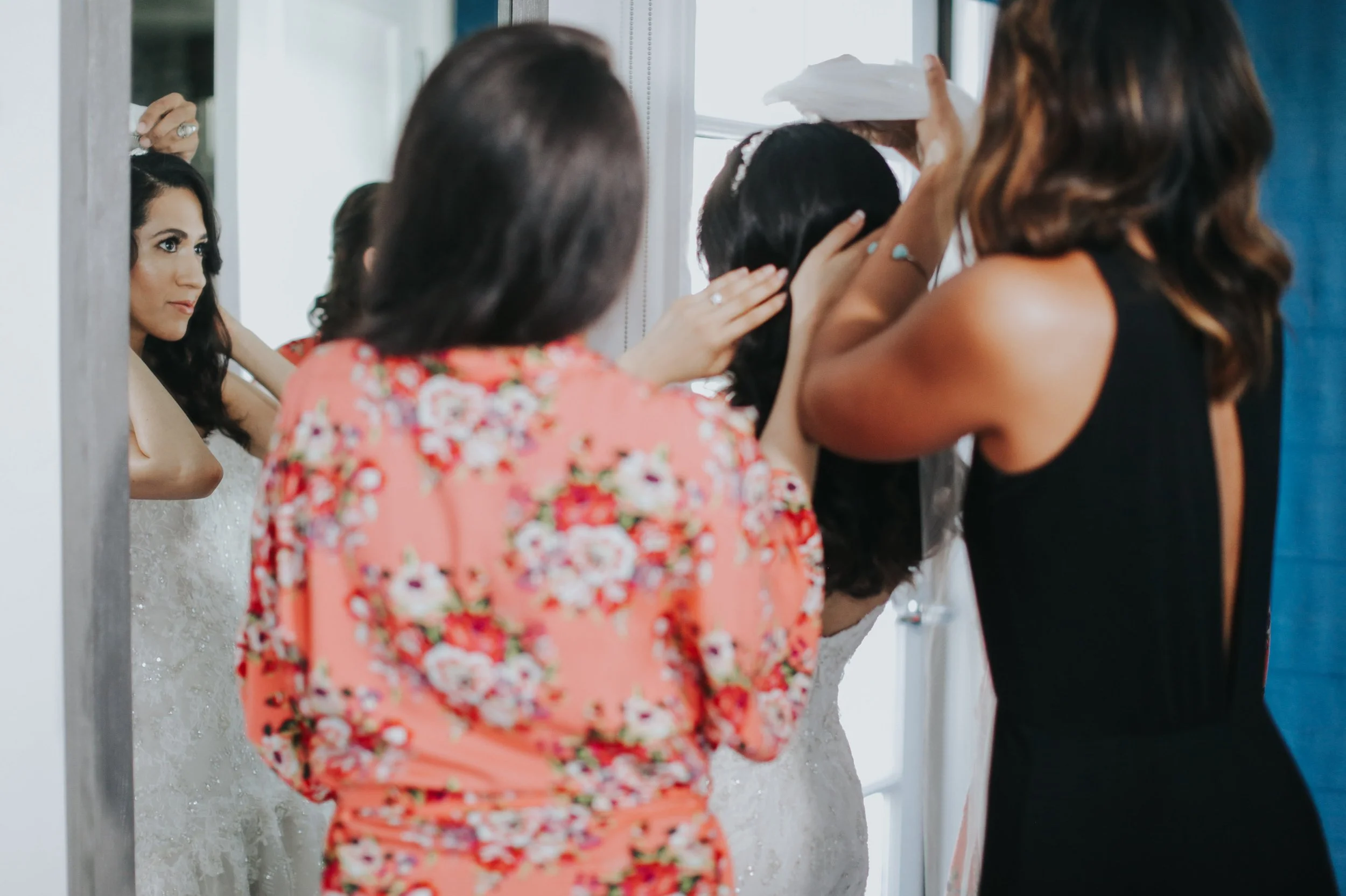 Complimentary floral or hair accessory placement